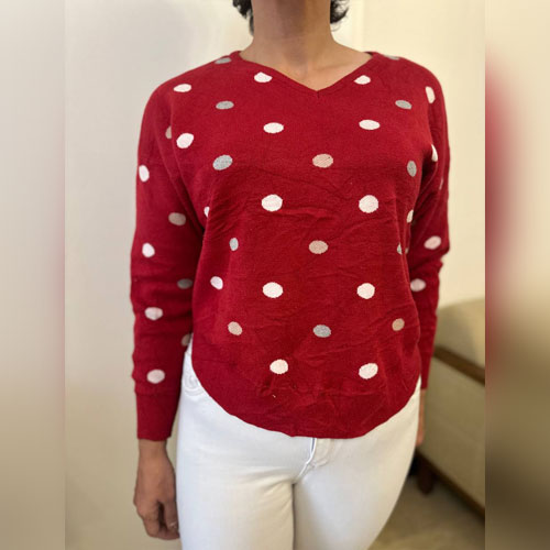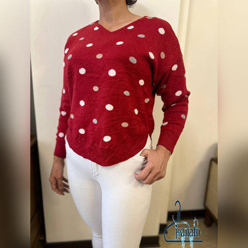 شومیز بافت قرمز آبنباتی خالدار زنانه KATIES – فریسایز، پنبهای، مناسب یلدا و زمستان