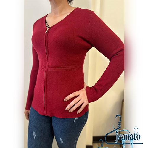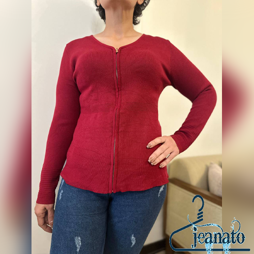 ژاکت بافت زنانه قرمز LIZ JORDAN مدل تمامزیپ – گرم، شیک و پرفروش پاییز و زمستان